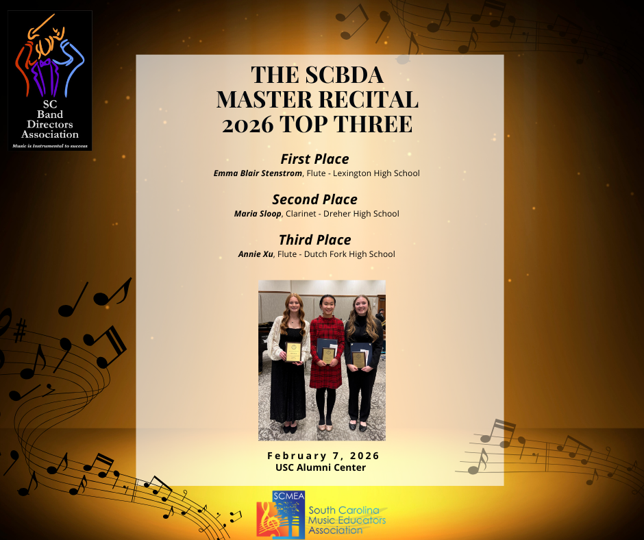 2026 SCBDA Master Recital 02/09/2026 Congratulations to all of the talented student musicians who performed at the 2026 SCBDA Master Recital Competition!